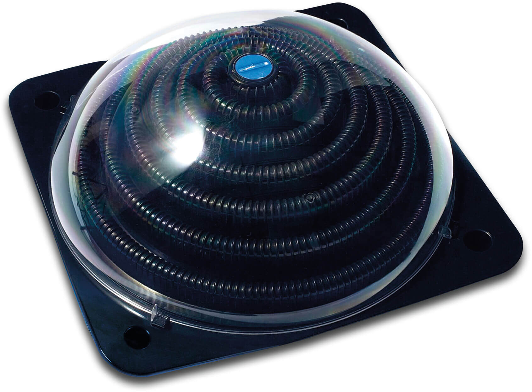 Kompakt solfångare med relativt hög kapacitet. Fungerar tillsammans med filterpump.